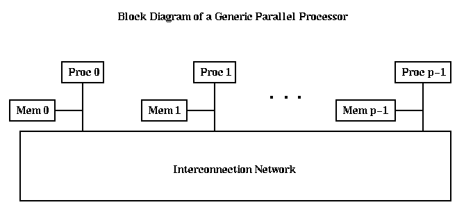 There are p processors, numbered from Proc 0 to Proc p-1, each of which has a memory, and all of which communicate over some Interprocessor Communication Network. We need to make a few simple distinctions among architectures of this form, the first of which is Flynn's taxonomy: