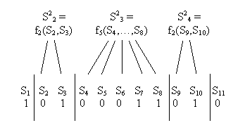 The new nodes themselves have character values, and are denoted as S2k where 2 indicates that they are at the second level of the tree, and k is their left-right position at that level.