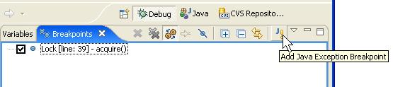 Breakpoints on exceptions: You can additionally have Eclipse pause execution when certain Exceptions are thrown. You can add them in the Breakpoints view in the Debug perspective: