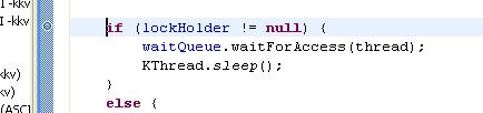 Breakpoints: Absolutely essential for debugging purposes. They can be added or removed by double-clicking in the gutter of the editor. When the line of code associated with the breakpoint is executed in debug mode, Eclipse will pause the program and go into the Debug perspective. From there you can do all sorts of useful things to fix code. The breakpoint is the blue dot shown here: