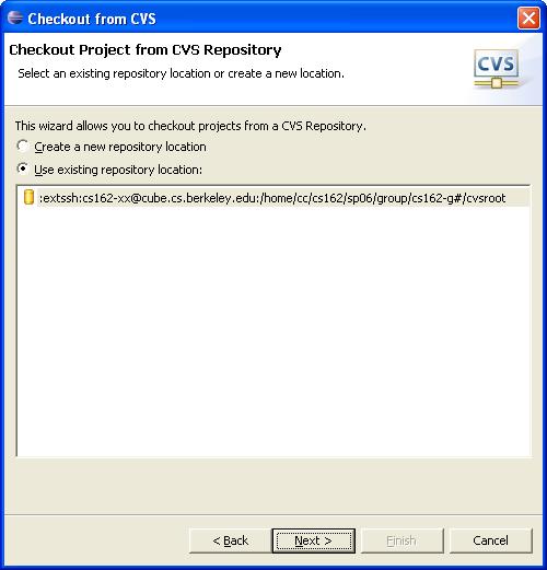 First you need to set up Eclipse to connect with your CVS repository. Start by switching to the CVS Repository Exploring perspective. Do this by going to Window > Open Perspective. Then right click in the CVS Repositories view (on the left) and select New > Repository Location. You will get this window: