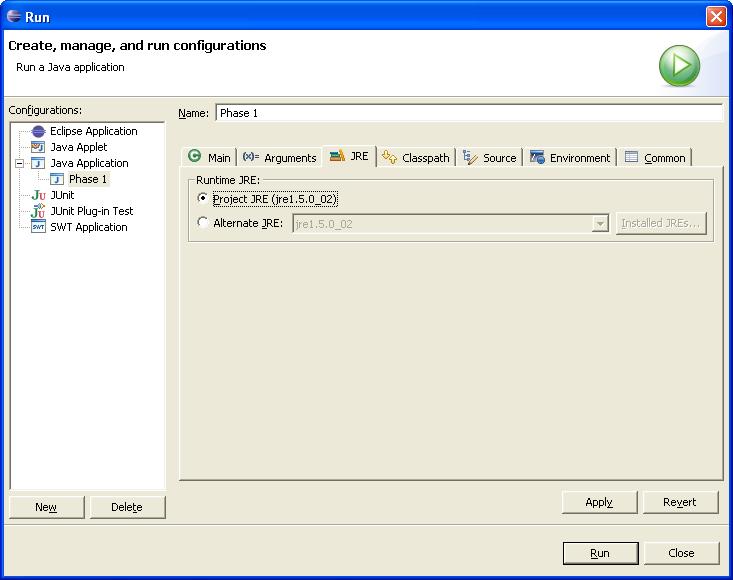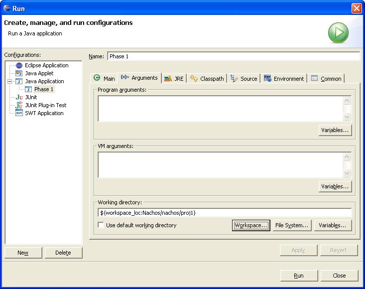 Once you have a run profile for one phase, you can copy and paste it three times to get all the run profiles you'll ever need (right-click on Phase 1 and select Duplicate). All you need to do is rename and point each to the proper startup directory from the Arguments tab.